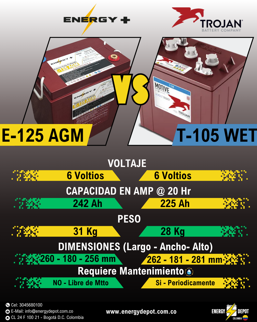 La competencia de la trojan T-105 con más AMPERAJE = más tiempo de trabajo